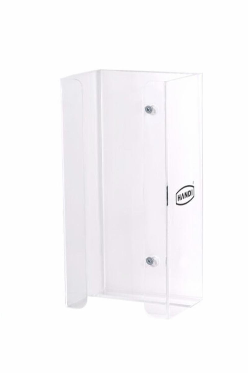 old dine Handi engangshansker organisert, tilgjengelige og beskyttet med vår engangshanskedispenser. Denne transparente dispenseren er spesialdesignet for å imøtekomme alle Handi engangshanskemodeller og gir en enkel og hygienisk måte å lagre hanskene på.
